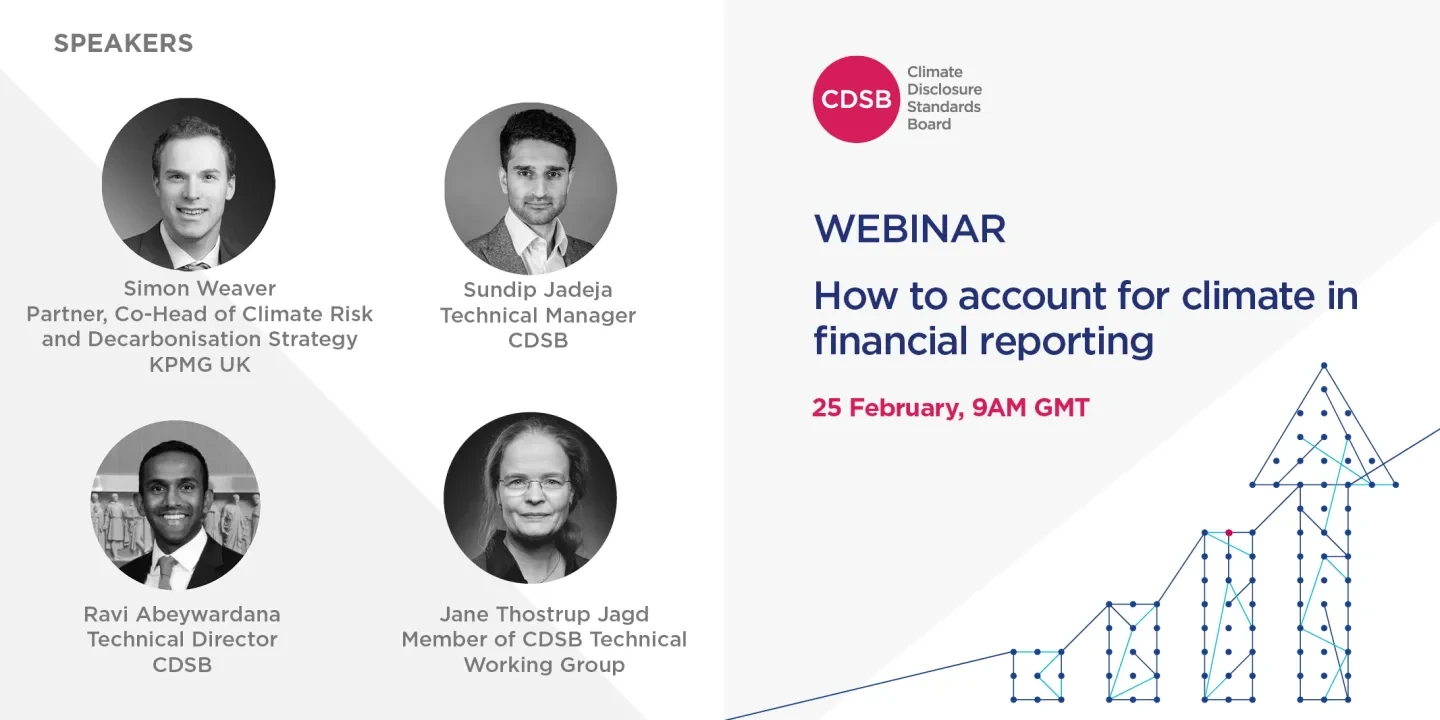 Following the publication of guidance for integrating climate matters into financial reporting by CDSB in December 2020, we welcome companies, preparers, accountants, the finance function and other stakeholders to join the webinar and gain insight into: