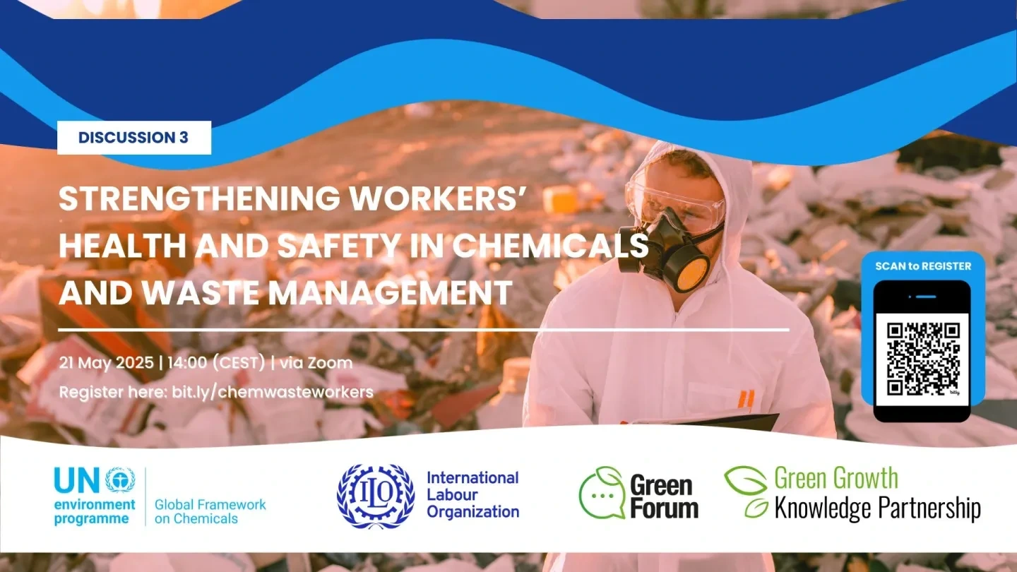 Workers handling hazardous chemicals face serious health risks every day. The Global Framework on Chemicals (GFC) Secretariat, the Green Growth Knowledge Partnership, and the International Labour Organization (ILO), invite you to a Green Forum community discussion that will spotlight real-world strategies to protect workers’ health—especially in vulnerable and informal sectors.