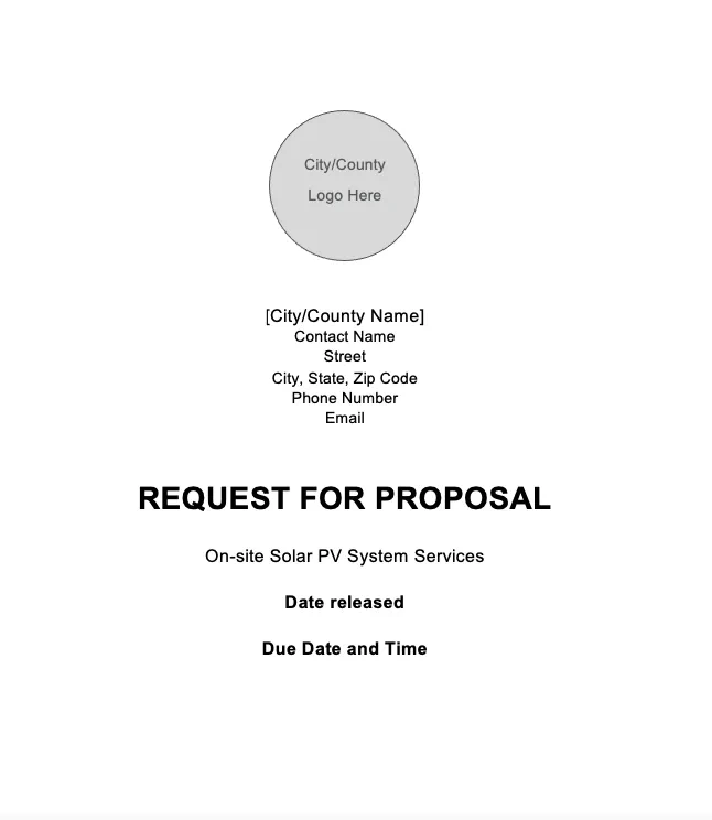 The goal of this on-site solar RFP template is to provide local governments with an easily modifiable on-site solar RFP. For cities and counties required to use their local government’s RFP template, the material in this template should be easily transferable to your city or county RFP template.